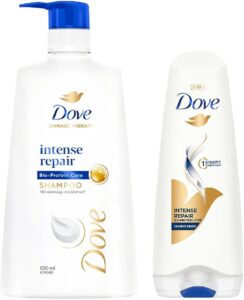 - DOVE Intense Repaire Conditioner For Damage Repair and damaged hair. Suitable for all hair type for women.This conditioner for frizzy, damaged hair leaves hair visibly smooth and more manageable giving you smoother hair* that you will be proud of. Use it after your shampoo on damp hair for best results. This nourishing conditioner works immediately to smoothen the hair surface, deeply nourishing to moisturize hair strands for healthier looking and smoother*hair use Dove repair conditioner.
